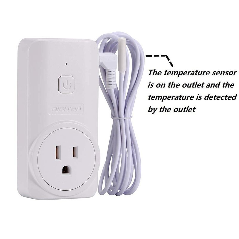 DIGITEN WTC200 Wireless Temperature Controller Thermostat Outlet Remote Control Thermometer with 2m/6ft NTC Temp Sensor Probe Heating Cooling Mode for Fan Heater Greenhouse Homebrewing Reptile