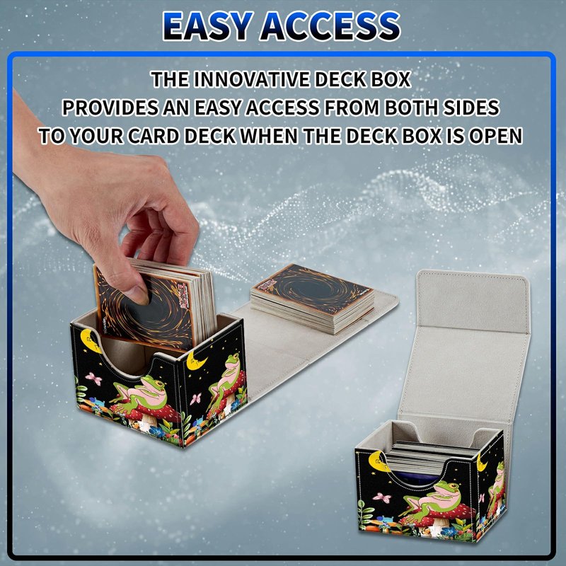 - TCG Deck Box: MTG commander deckcard storage box is not just a deck box MTG or a part of your accessories. It's a versatile storage solution suitable for a variety of TCGs, CCGs, LCGs, and other collectible cards. whether you're a casual player or a competitive gamer, our card storage box is your ideal companion, offering ample room for all your gaming essentials.