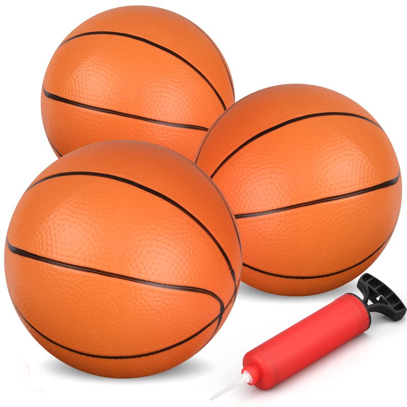 - Made from natural rubber, these balls are non-toxic and safe for endless fun. Package includes three 7-inch diameter red rubber basketballs. Enjoy an extra bonus with a pump and pin for easy inflation.