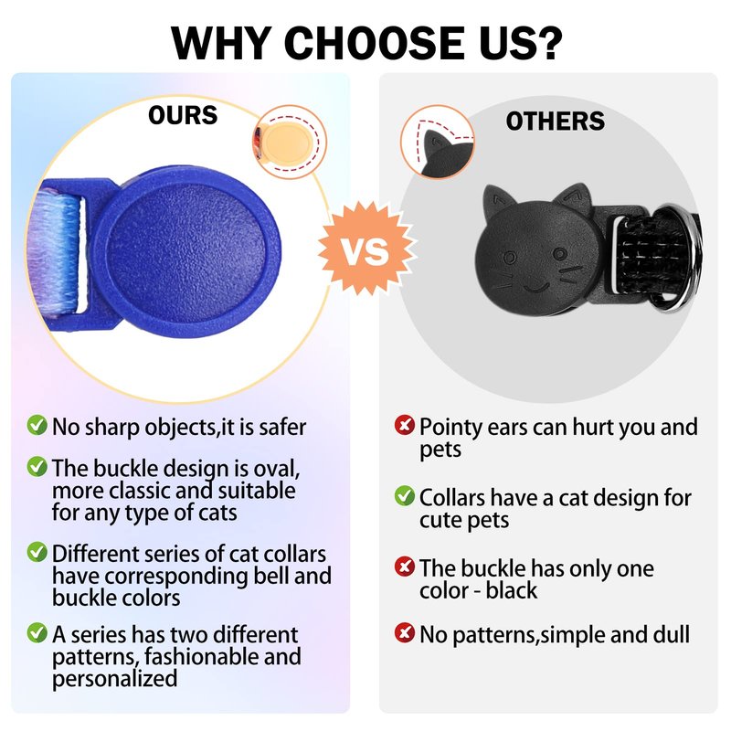 - SAFE BREAKAWAY COLLAR BUCKLE -The cat collars will quick release under pressure if your pet gets caught on something.You have peace of mind that it is not going hang itself up in somewhere while exploring the neighborhood.