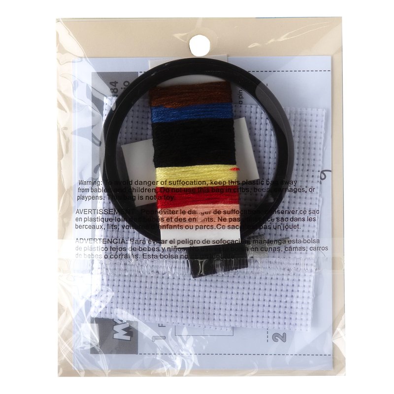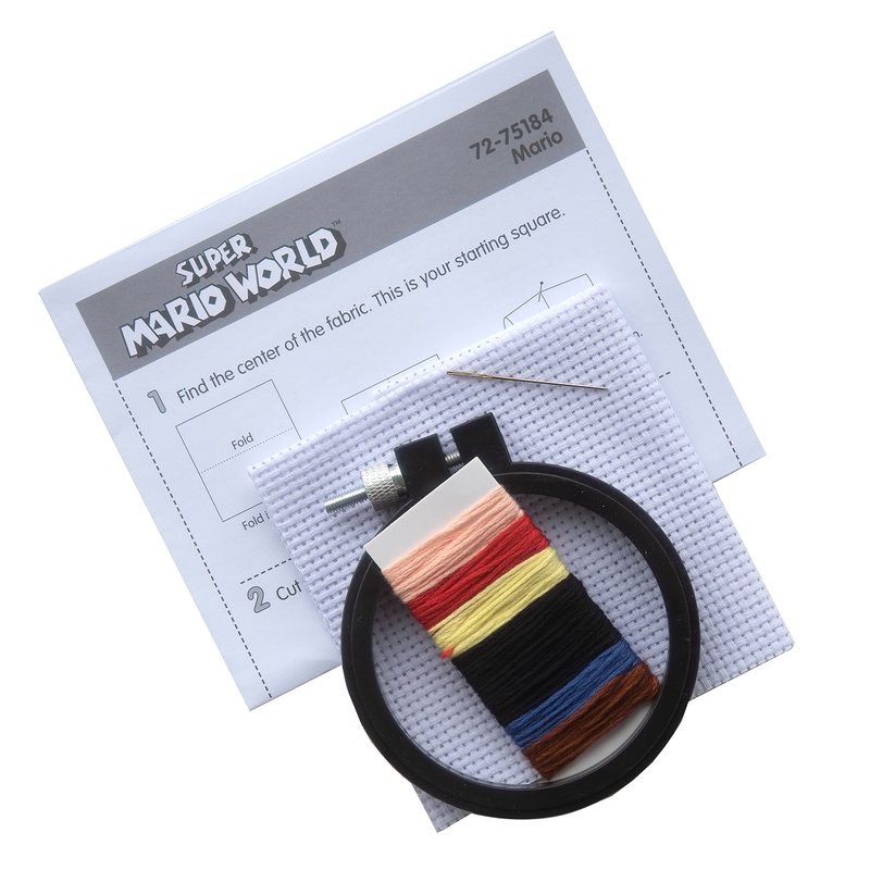 - Super Mario kit contains thread, (1) hoop, 11 count white aida fabric, (1) needle, and easy-to-follow instructions.