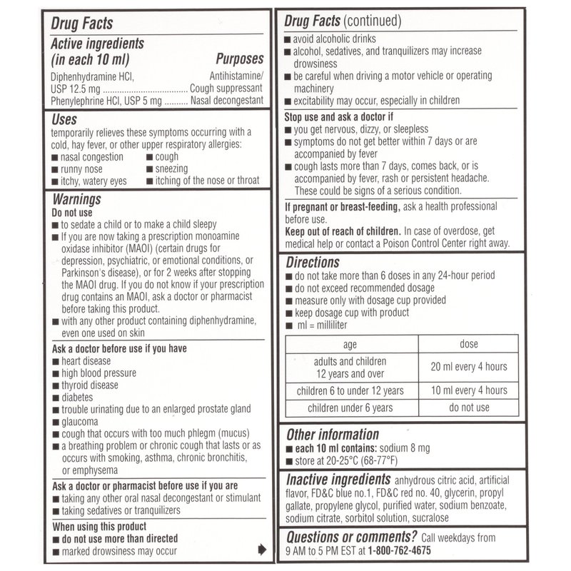 - Relieves cold symptoms including congestion, cough, runny nose, and sneezing