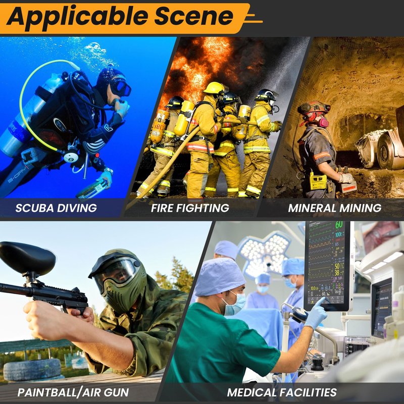 - USE IT SAFELY: PCP scuba tank adapter's working pressure up to 4500 psi, Max up to 6000 psi. You can safely fill the compressed air in the diving tank with PCP air guns into paintball, HPA co2 tanks. But we don't recommend that you use too high a pressure value.