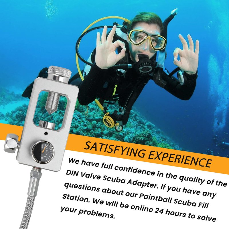 - SATISFYING EXPERIENCE: We have full confidence in the quality of the silver DIN valve scuba adapter. If you have any questions about our paintball scuba fill station. We will be online 24 hours a day, and solve your problems wholeheartedly.