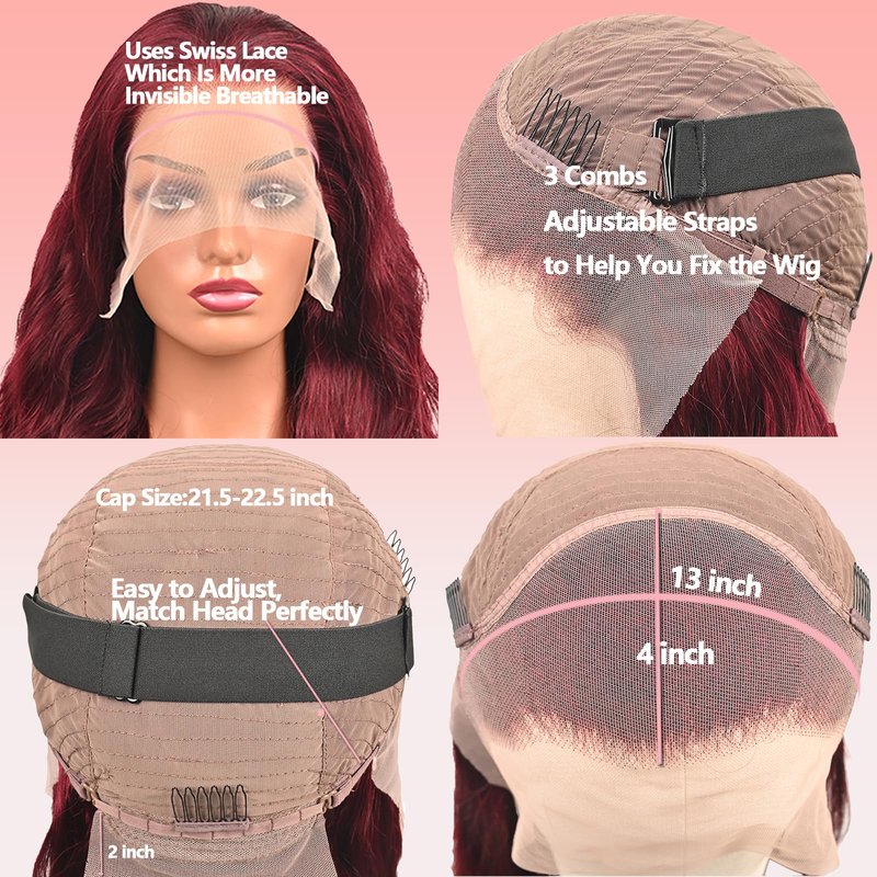 - 99J Lace Frontal Wig Human Hair Suit For Any Occasion:Burgundy Body Wave13x4 Lace Front Wigs will Bring You the Perfect Look for Daily Life, Can Bring You A Perfect Look In Suitable For Wedding,Holiday,Theme Parties,Birthday,Christmas,New Year,Daily Life,Office Lady And Cosplay