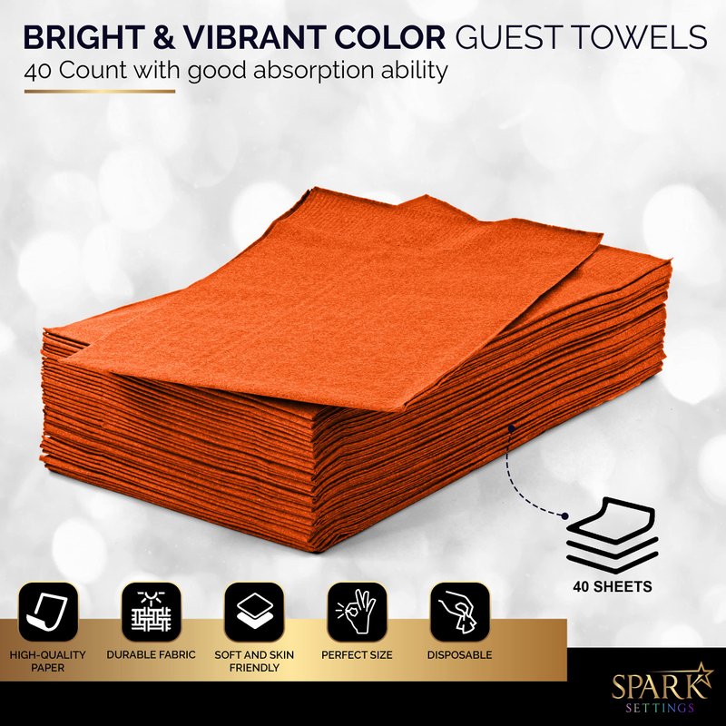 Dinner Napkins Disposable Guest Towels, Orange Beverage Napkins Soft and Absorbent Paper Napkins Dinner Size for Party, Wedding, 8” x 4.5” 2 Ply Party Napkins, Pack of 40 - by Amcrate