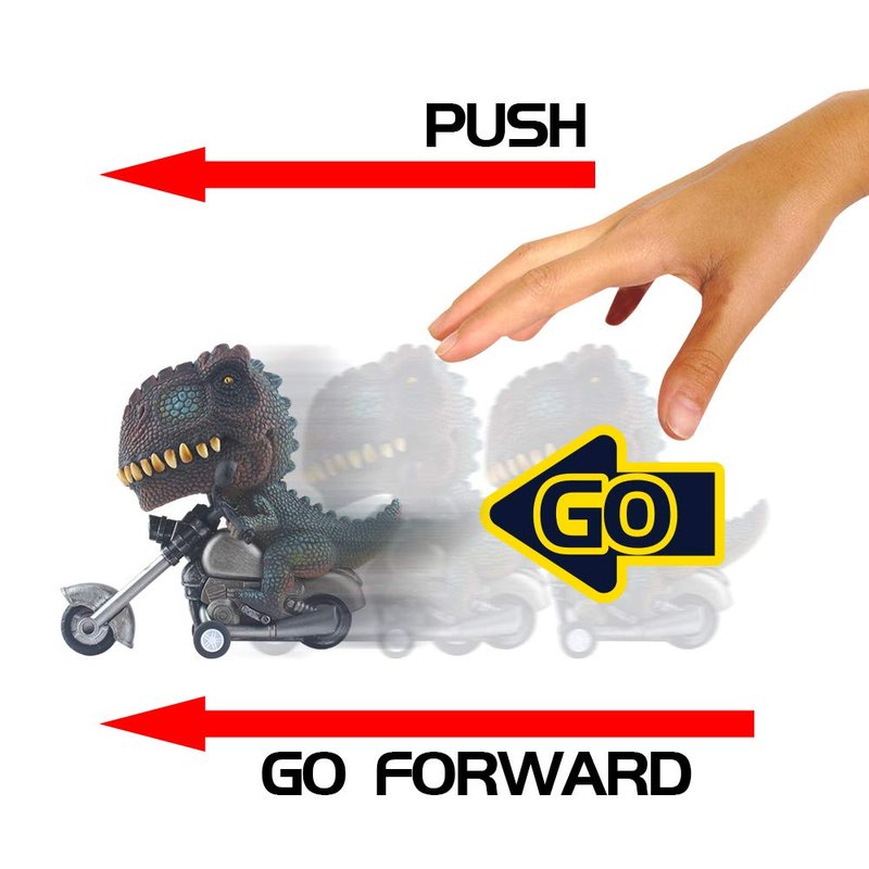 - [REV THEM UP AND LET THEM GO] The simple push and go dinosaur motorcycles are easy for children to play. Using friction-power wheel to rev up the dino and it will go fast. The dino rider on motorcycles make playing dinosaur games mighty fun.