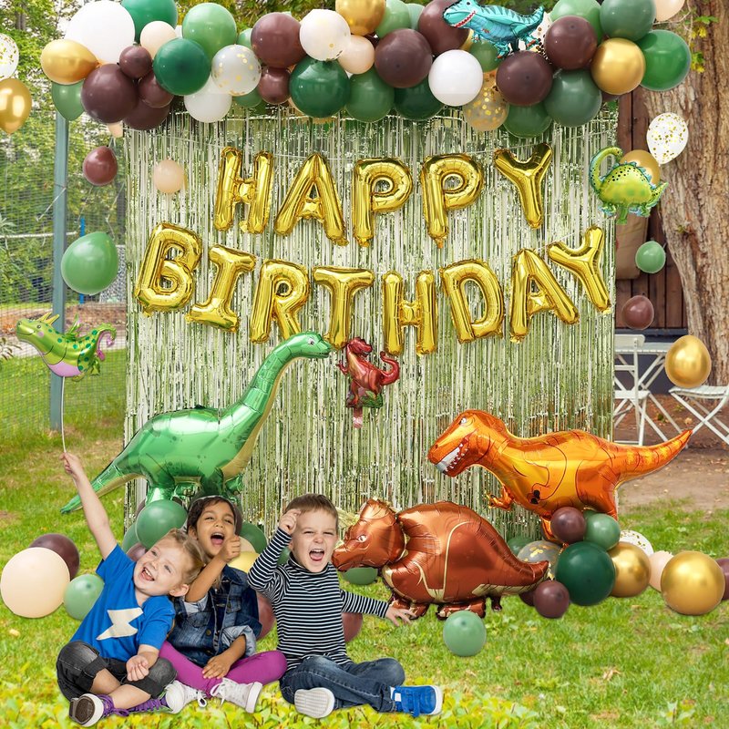 Dinosaur Birthday Decorations, Dinosaur Birthday Party Supplies for Boys Include Foil Dinosaur Balloons, Happy Birthday Balloons, Rain Curtain,Latex Balloons Arch Kit for Dino Jungle safari Party