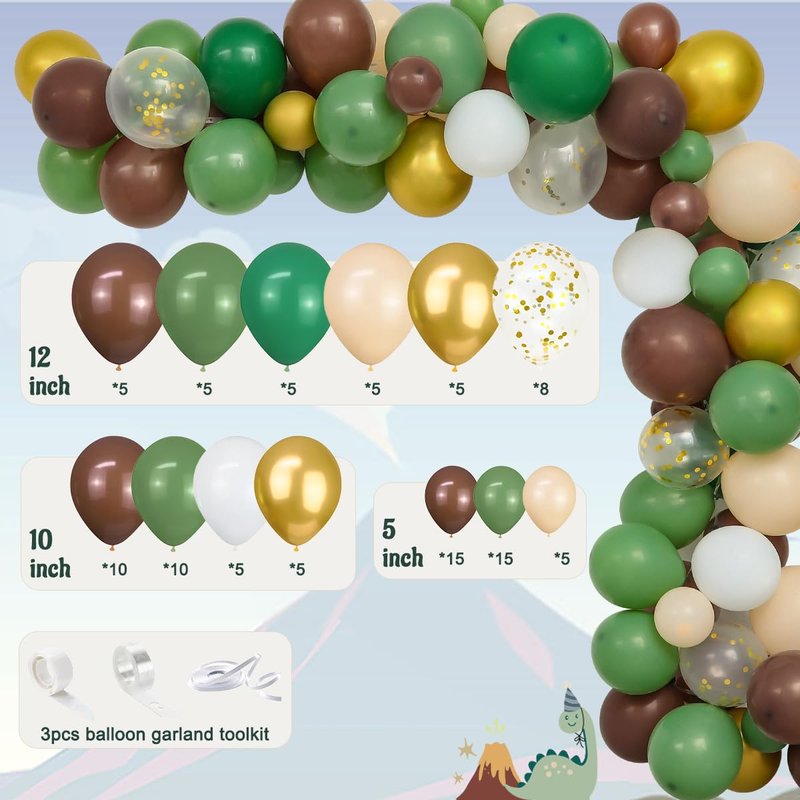 - 【How to Make a Balloon Garland】The dinosaur balloon garland kit comes with 3 balloon tools, including balloon arch strip, glue dots and ribbon. It is easy to build a perfect dinosaur balloons arch to enrich your baby's birthday decorations. Please use an electric or hand pump to inflate the balloons, do not inflate the balloon more than 90% to avoid sudden popping.
