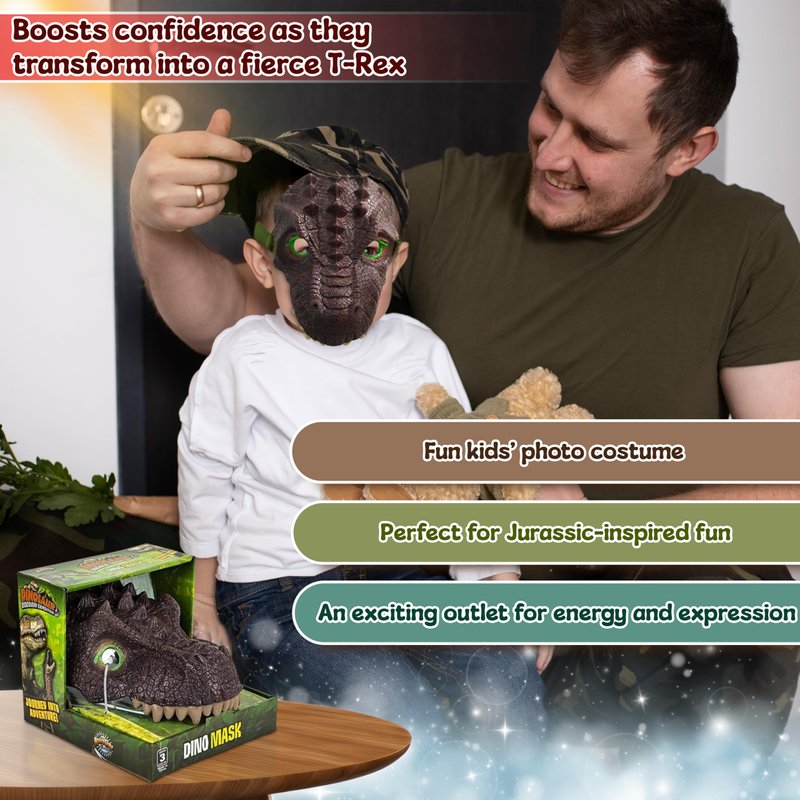 - The mask would fit most of the face making your child become a fearsome dino