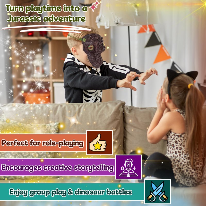 - 🦖 IDEAL FOR JURASSIC PARK LOVERS - Little dinosaur fans will be thrilled with this mask; it gives them the opportunity to become one of these mighty beasts. Kids can wear the mask not only for Halloween or dino related activities, but they can also use it year-round as they are durable enough to withstand multiple uses. It works great for birthday parties, sleepovers, or just for fun during playtime.