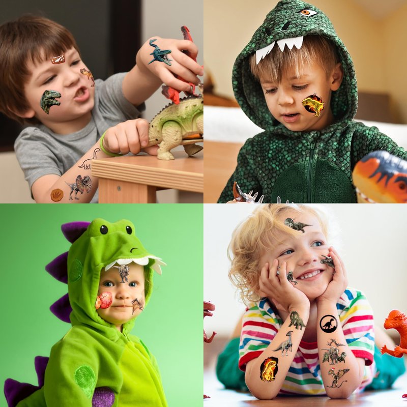 - 🥳【ADD A TOUCH OF FUN】: Are you tired of mundane gifts? We've got you covered! Our collection of adorable and vibrant dinosaur temporary tattoo designs can be applied to laptops, backpacks, desks, suitcases, books, water cups, and more. These playful elements will surely elevate your visual experience and bring a touch of joy to everyday items.