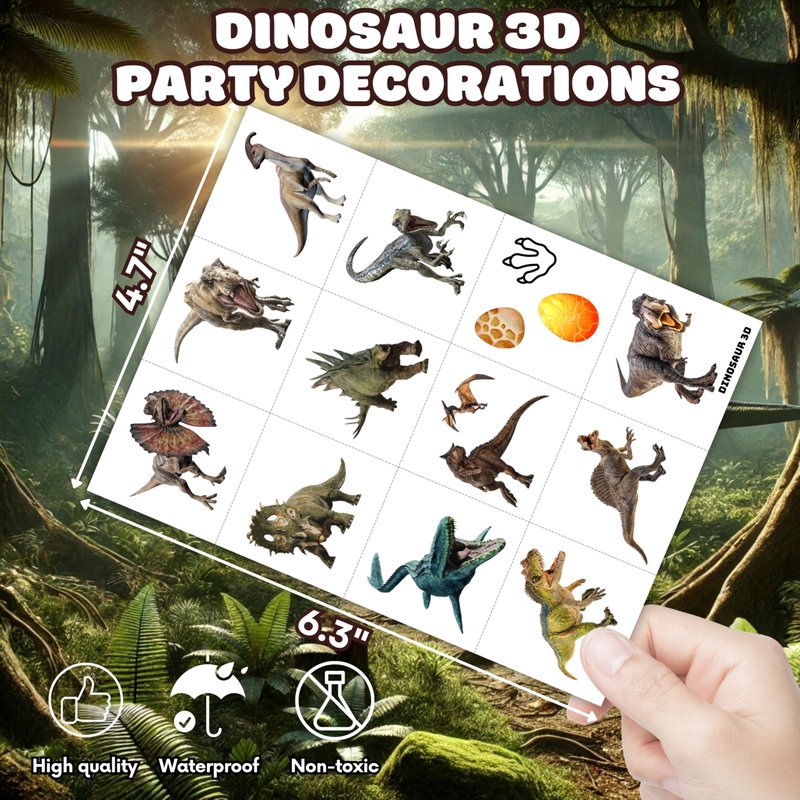 - 🎁【GREAT GIFT IDEAS FOR DINOSAUR PARTY SUPPLIES AND DECORATIONS】: You will receive many compliments when you decorate your child's birthday party with a DINOSAUR, 3D dinosaur, dino, Herbivorous dinosaurs, Tyrannosaurus Rex, Dinosaur eggs, Paleontology, Fossils, Prehistoric, theme. DINOSAUR tattoos are a small gift you should not pass up for your kids.