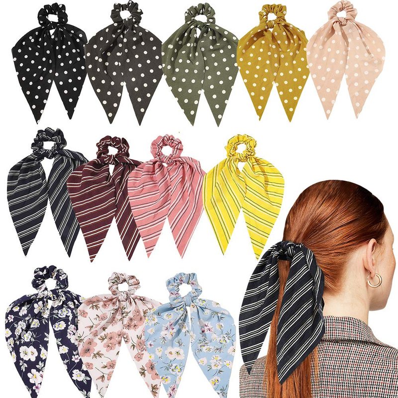 - ★Package included: 5Pcs chiffon polka dots hair ties scarf and 4Pcs Stripes hair scrunchies, 3Pcs Floral Hair Scarf Scrunchies just like picture show.