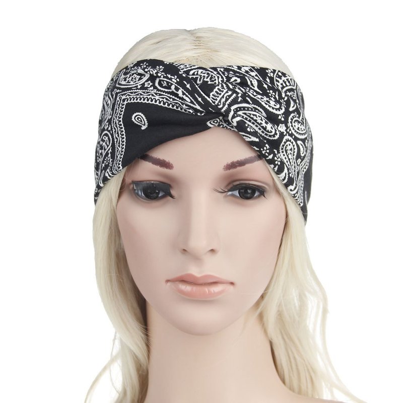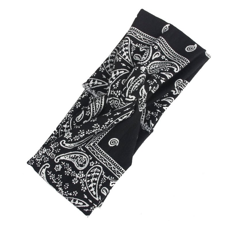 DINPREY Assorted Paisley Print Wide Bandana Knot Headbands Criss Cross Head Wrap Hair Band (Black)