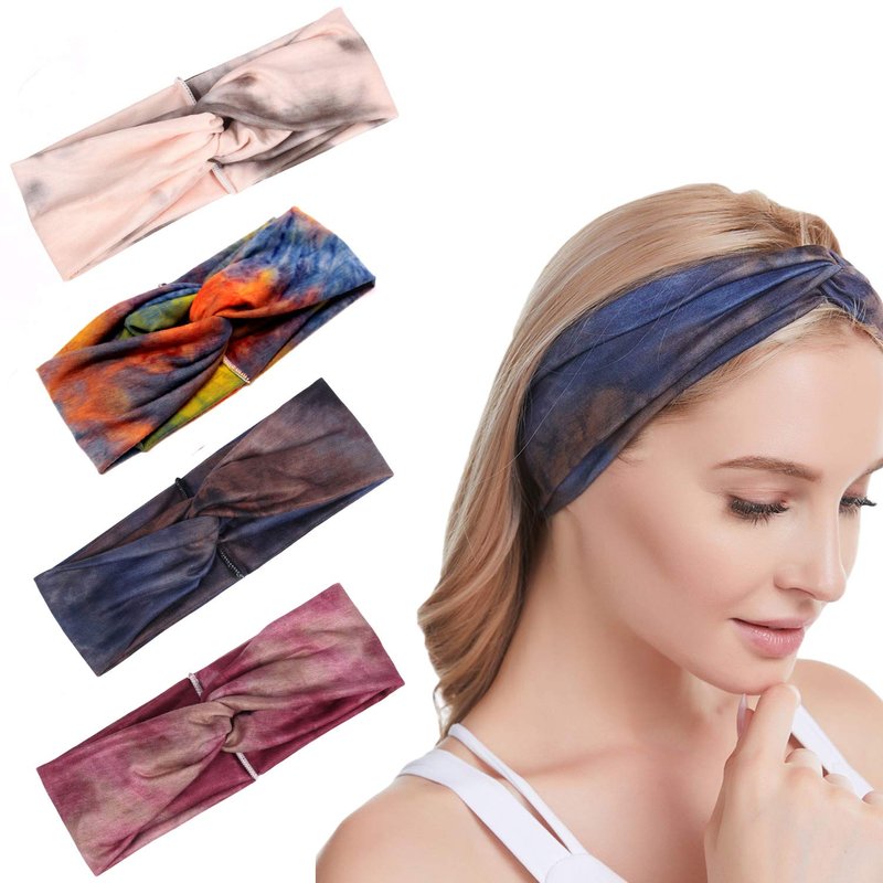 DINPREY Boho Hadband Paisley Bandana Head Wraps Sport Yoga Sweatbands Flower Printed Hairband Tie Dye Head Bands Wide Cotton twist headbands for women (4 Colors Pack B)