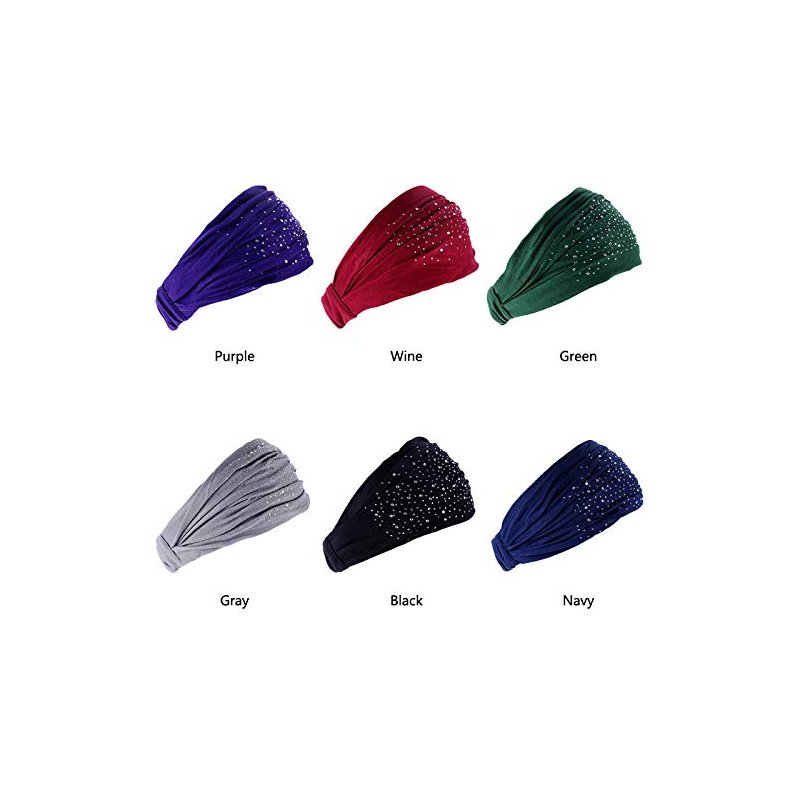 DINPREY Rhinestone Bandeau Headbands (6 Count) - Stretchy Cotton Spandex Fabric, Floral Design, Hairwraps for Women's Yoga, Bridal, Festivals, Workout, Makeup, Everyday Wear
