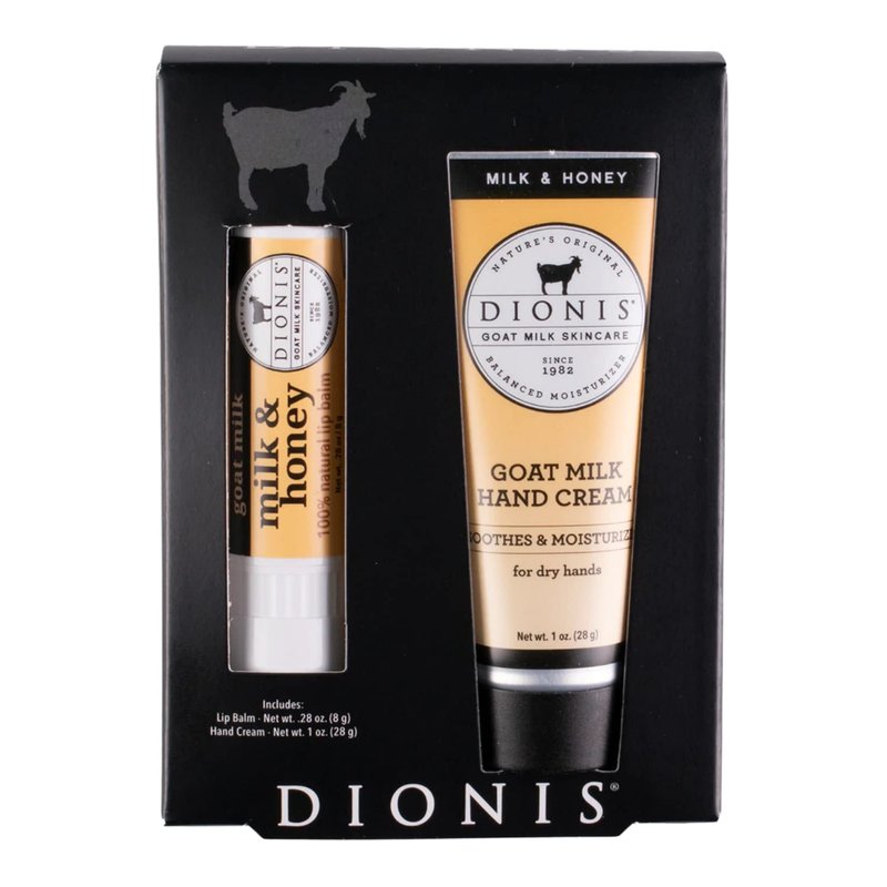 Dionis Goat Milk Skincare Milk & Honey Scented Hand Cream & Lip Balm Set (1 oz and .28 oz) - Made in the USA - Cruelty-free and Paraben-free