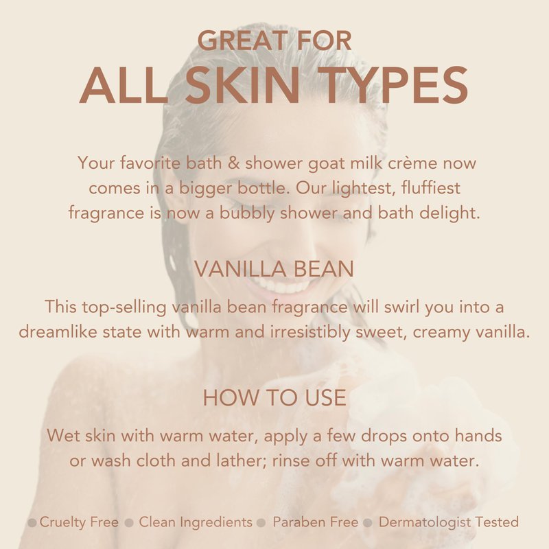 - Goat Milk for Skin Health - Indulge in the natural richness of goat milk, a powerhouse of vitamins and nutrients including A, C, D, E, and B complex, as well as lipids and triglycerides. Harnessing the natural goodness of goat milk our body wash preserves your skin's microbiome, promoting moisture and suppleness.