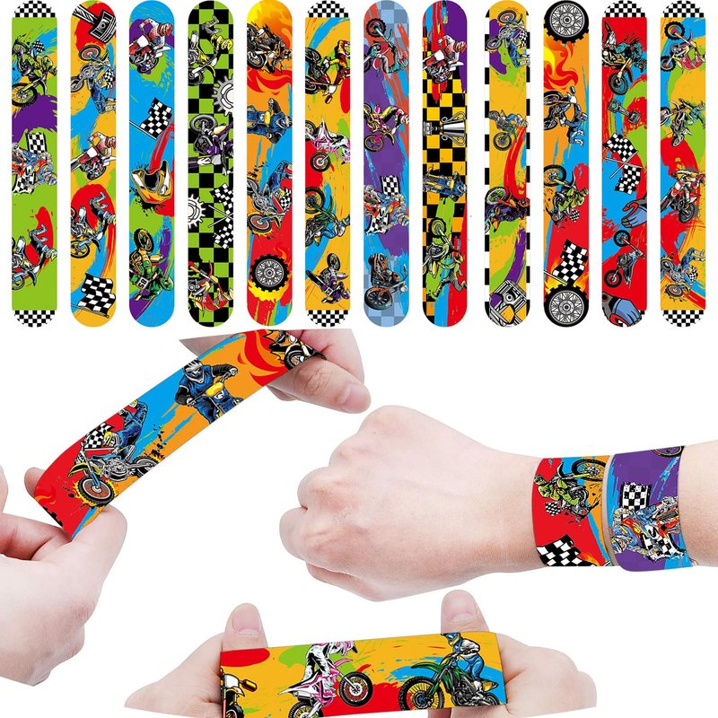 - Convenient: Key chain can be used as a good decoration to hang on school bags, wallets. Dirt bike slap bracelets which are comfortable and safe to wear, You just need to tap it gently on your wrist, and it will form a circle, and wear it firmly on your wrist.