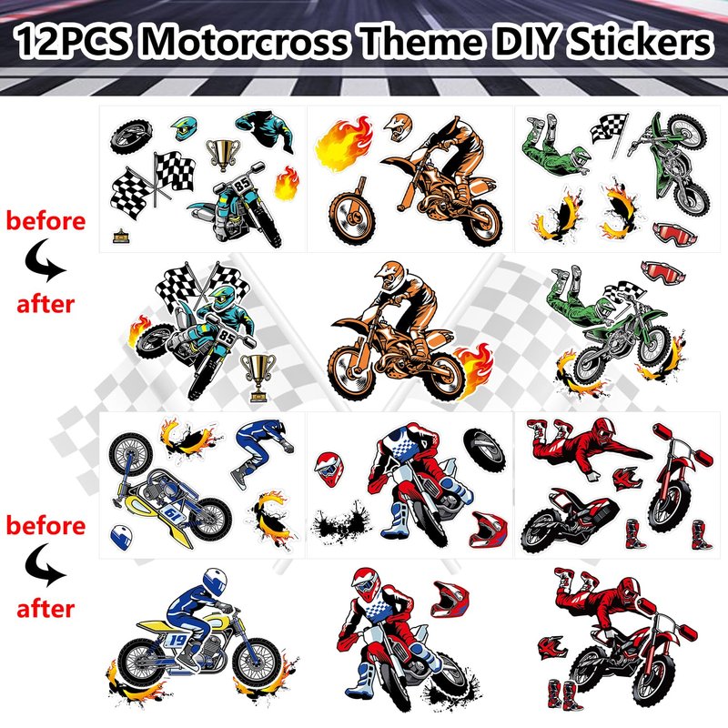 - Unique Dirt Bike Design: These exquisite dirt bike party favor supplies specially designed for people who love dirt bike and sports. Rich tropical colors including blue, yellow, orange, red, and green colors blend with a unique pattern like tire marks, trophies, and motorcycle theme elements on the dirt bike birthday party supplies set. Very suitable for dirt bike themed party or sports club gift supplies.