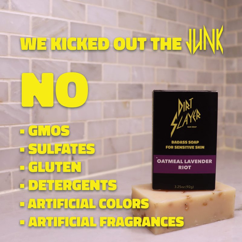 - DIRT SLAYER’S MISSION: Develop soap for all skin types, especially sensitive skin. You can smell and feel fresh without artificial ingredients or fragrances. We want to keep it easy and meet the needs of everyone. Just add water, lather up and you’re ready to rock n’ roll.