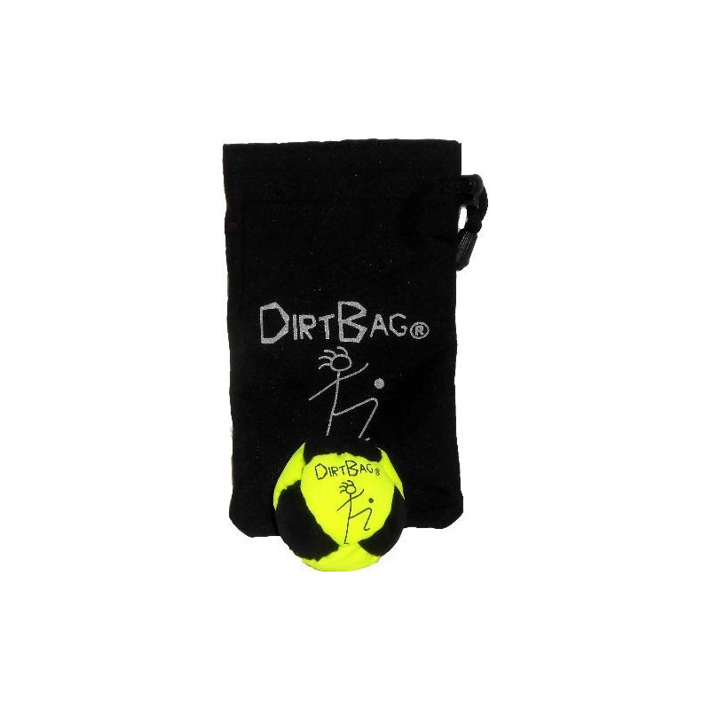 DIRTBAG Classic Footbag Hacky Sack with Pouch, Flying Clipper Original with Signature Carry Bag - Fluorescent Yellow/Black.