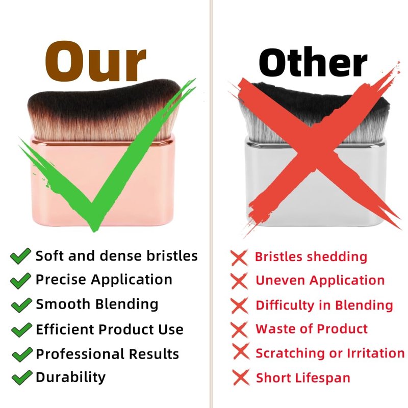- EASILY APPLY SELF TANNER : body Tan brush for blend & buffing putting on any type of body shimmer/makeup, powder, cream, blush, liquid foundation, self tanner, sunless tan, tanning mousse, tan tanspray, tanning lotion, body lava, bronzer. Create a natural look quickly and accurately.