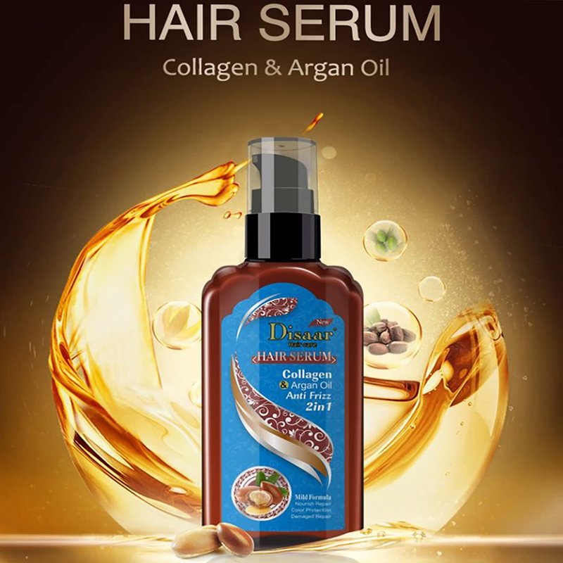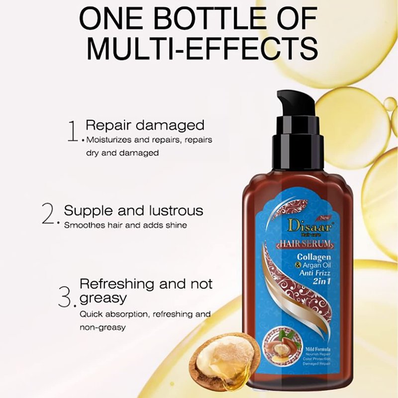 DISAAR Beauty Hair Serum Anti Frizz 2in1 Mild Formula Nourish Repair Color Protection Damaged Repair 120ml/4.23fl.oz (Collagen & Argan Oil)