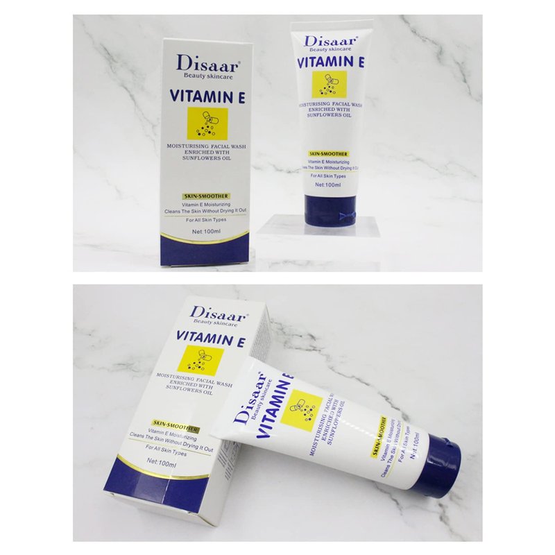 - Face Wash Foam with Vitamin E for all skin types DISAAR BEAUTY Vitamin E Rejuvenating Whip Facial Wash Skin Smoother. Face wash foam for all skin types with a concentrated vitamin E formula for deep cleansing, moisturizing and nourishing sensitive facial skin.