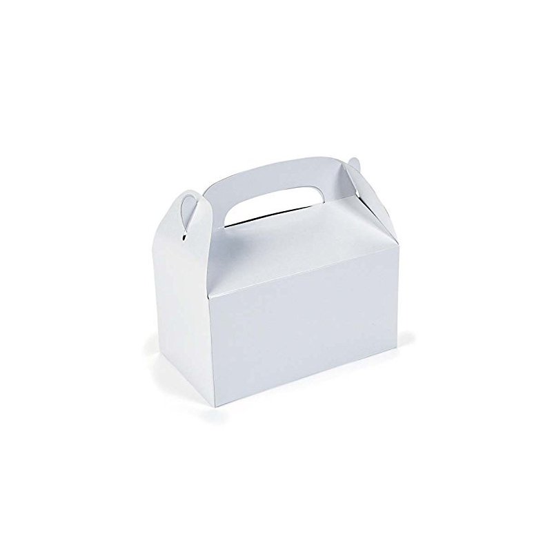 24 White Treat Boxes. Paper. 6 1/4" x 6". Simple assembly required. Fill with your own treats, cookies, candy, gifts, novelty. Fun for holidays, birthdays, favors, parties, Valentine's day, Christmas holiday.
