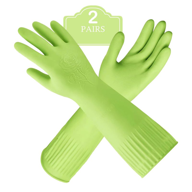 - 【MULTIPURPOSE GLOVES】Household kitchen gloves can be used for kitchen cleaning, dishwashing, car washing, pet care, bathroom and toilet, and indoor and outdoor gardening cleaning to prevent hand skin contact with corrosive liquids.