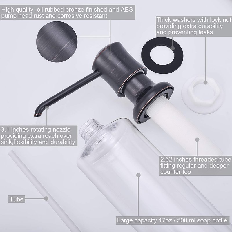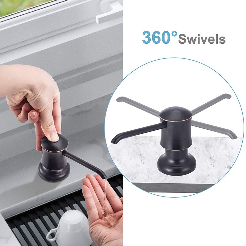 - ✔️【REFILLED FROM THE TOP 】 Our sink soap dispenser epuiped with an 17oz soap bottle, you just need to remove the pump head and refill soap from the top when the soap use out. No more Kneeling down under the sink to refill the soap liquid