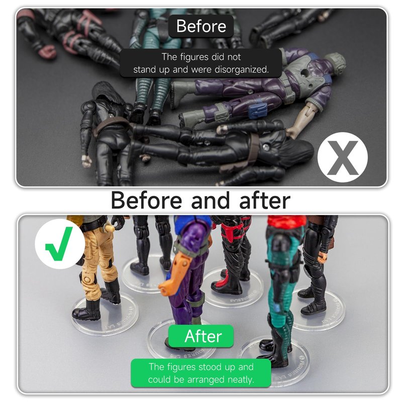 - MATERIAL: Made from virgin rigid PVC,The action figure stands are clean from scratches, well molded, smooth edge, heavy duty PLASTIC, which is so sturdy and durable, easy assembly and replace.