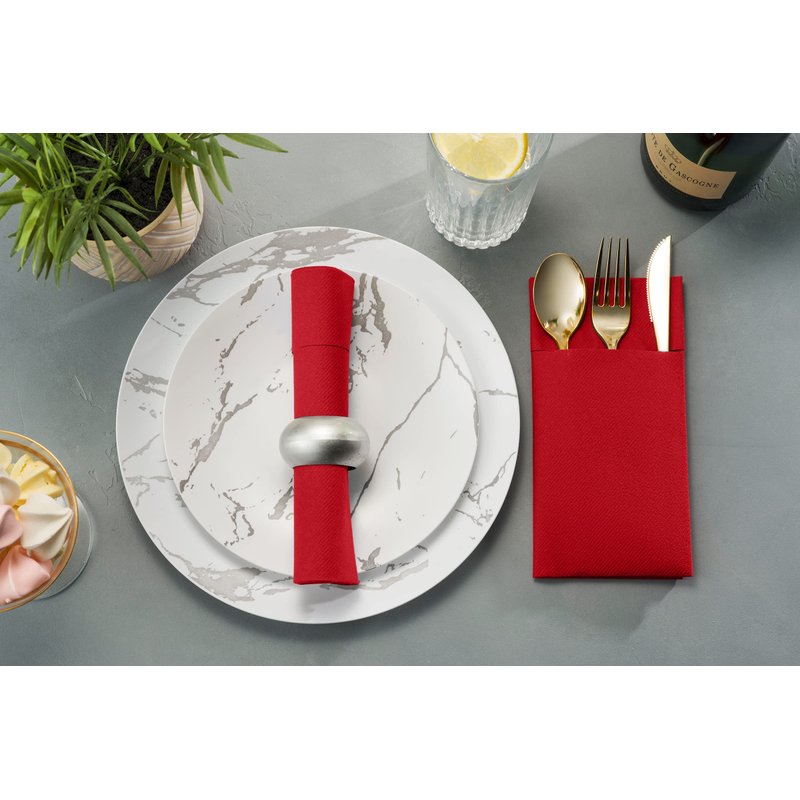 - PRACTICAL, CONVENIENT AND VERSATILE - Silverware fits easily into the pre-folded pocket to ensure your utensils remain sanitary and stationary on each table until they're needed. These elegant Airlaid Napkins are excellent upscale cafes, bistros, and catering companies.