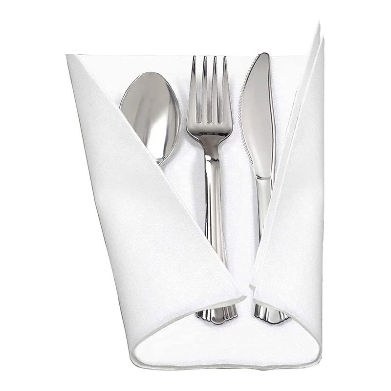 Disposable Plastic Cutlery Rolls | Looks Like Silver with Stainless Steel Coating, Formal Alternative Cutlery, Durable, Linen-Quality Napkin Full Size, WNA Brand 30ct