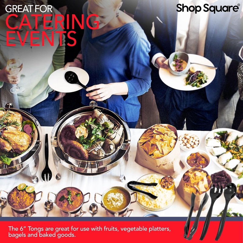 Disposable Plastic Serving Utensils - Set of 18 Black Plastic Utensils, 6 Each 6" Serving Tongs, 10” Serving Spoons, 10” Serving Forks, Buffet Serving Utensils, Party Utensils