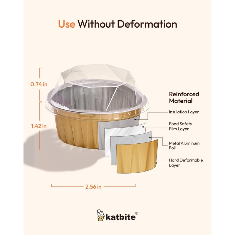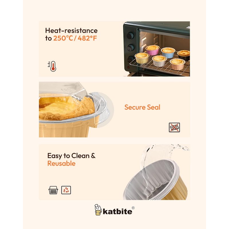 - High-Quality Aluminum: Made with food-grade thick aluminum foil, the disposable ramekins with lids maintain good structural stability, allowing for direct oven baking, simplifying the baking process. Their smooth surface is water and oil resistant, enhancing the overall baking and serving experience.