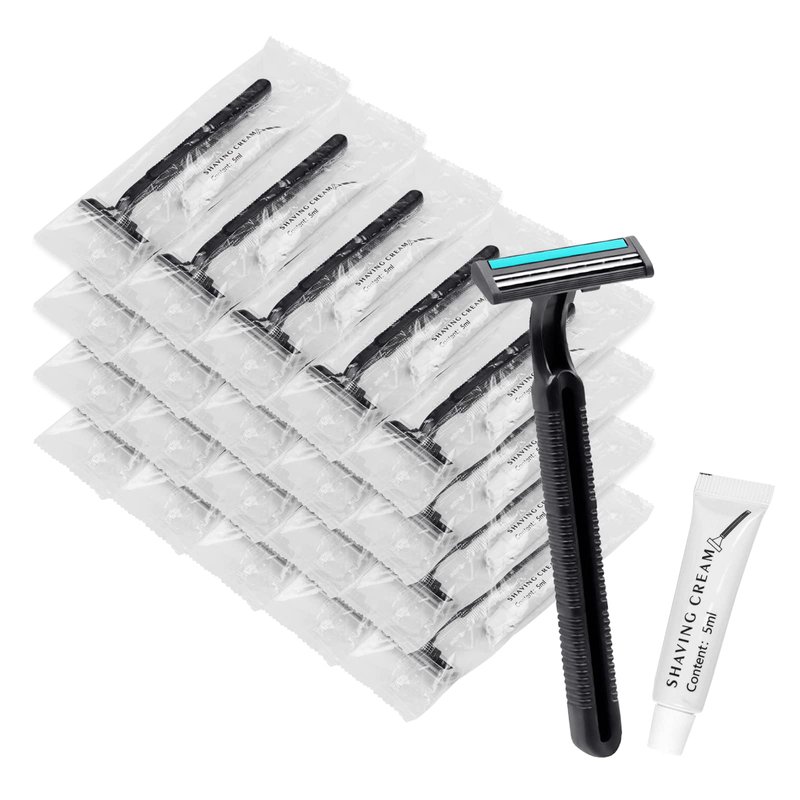 - Brand: Lomgwumy. Wide range of uses: mens disposable razors bulk material is environmentally friendly, a pack of 30 pieces, each pack is matched with a delicate shaving cream, bulk, individually packaged. The individually wrapped razors can be kept at home and used when guests are visiting. twin blade disposable razors bulk is also suitable for hotels, host families, shelters, church charity events, nursing home residents, homeless people.
