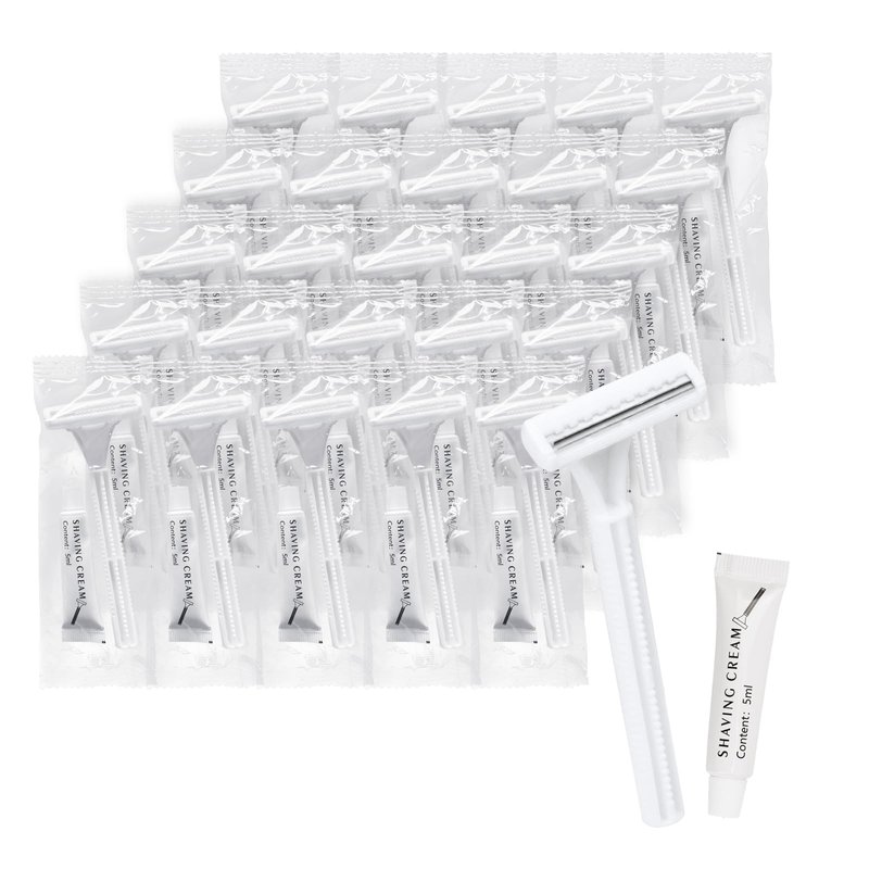 - Brand: Kocpudu. Wide range of uses: mens disposable razors bulk material is environmentally friendly, a pack of 30 pieces, each pack is matched with a delicate shaving cream, bulk, individually packaged. The individually wrapped razors can be kept at home and used when guests are visiting. twin blade disposable razors bulk is also suitable for hotels, host families, shelters, church charity events, nursing home residents, homeless people.
