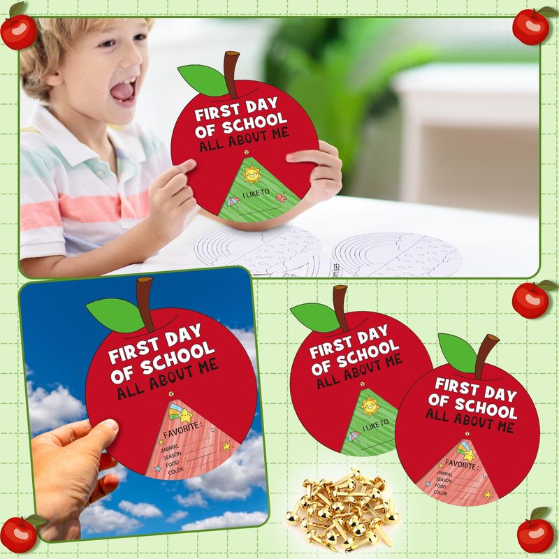- What You Get: 24 sets of color your own first day of school wheels (48 sheets in total, 8" in diameter), and 24 pcs of metal brads; Please note: to reduce plastic packaging, these craft kit pieces aren't pre-packaged for personal use, please do consider this before purchasing