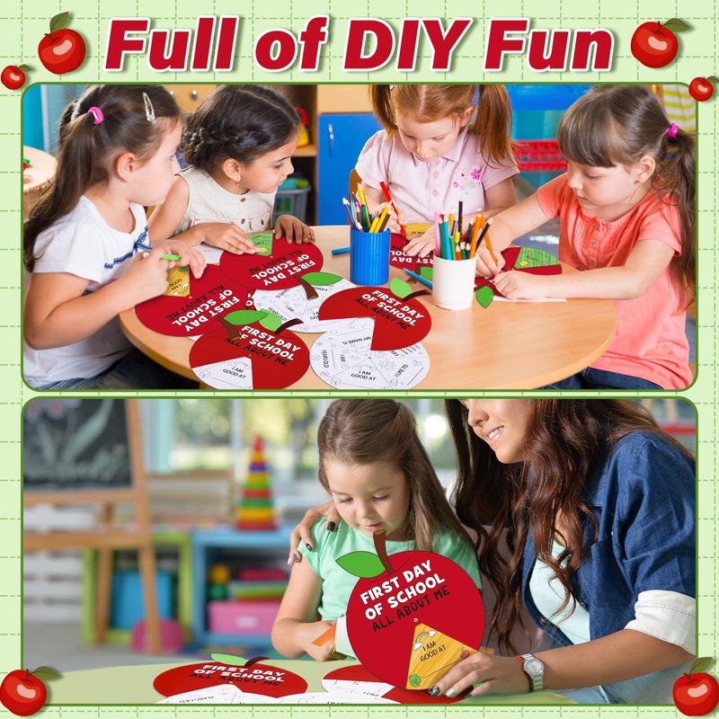 Dispowreath 24 Sets Color Your Own Back to School Craft Wheel, First Day of School All About Me Apple Craft Activity Kit for School Home Classroom Supplies