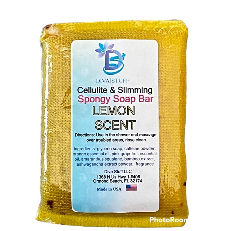 Diva Stuff Cellulite and Slimming Spongy Soap Bar, Lemon Sugar Scent, With Caffeine, Bamboo Extract, Ashwagandha Root Powder and More