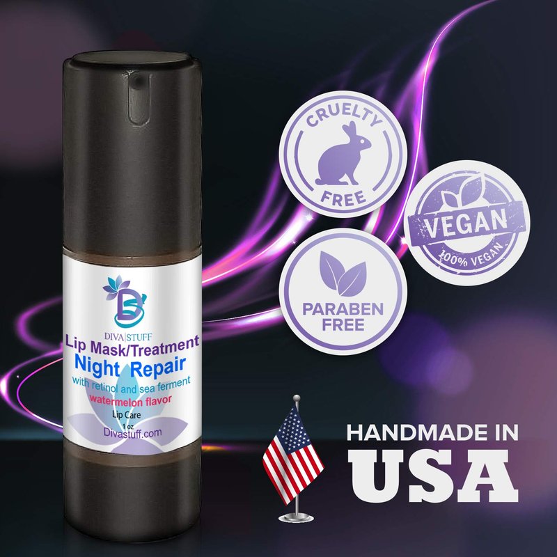 Diva Stuff Night Repair Lip Mask and Treatment | With Retinol & Sea Ferment for Soft, Plump Lips | Nighttime Treatment | Made in the USA w/Safe Ingredients | 1 fl oz