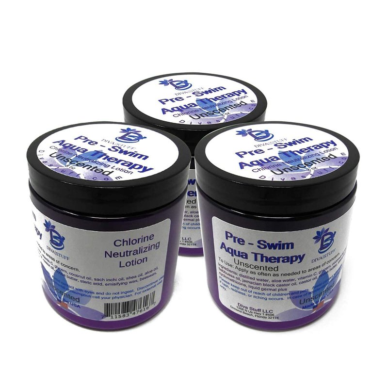 Diva Stuff Pre-Swim Aqua Therapy Chlorine Neutralizing Body Lotion,Protects Skin From Chlorine and Salt Water, Unscented, 3 pack
