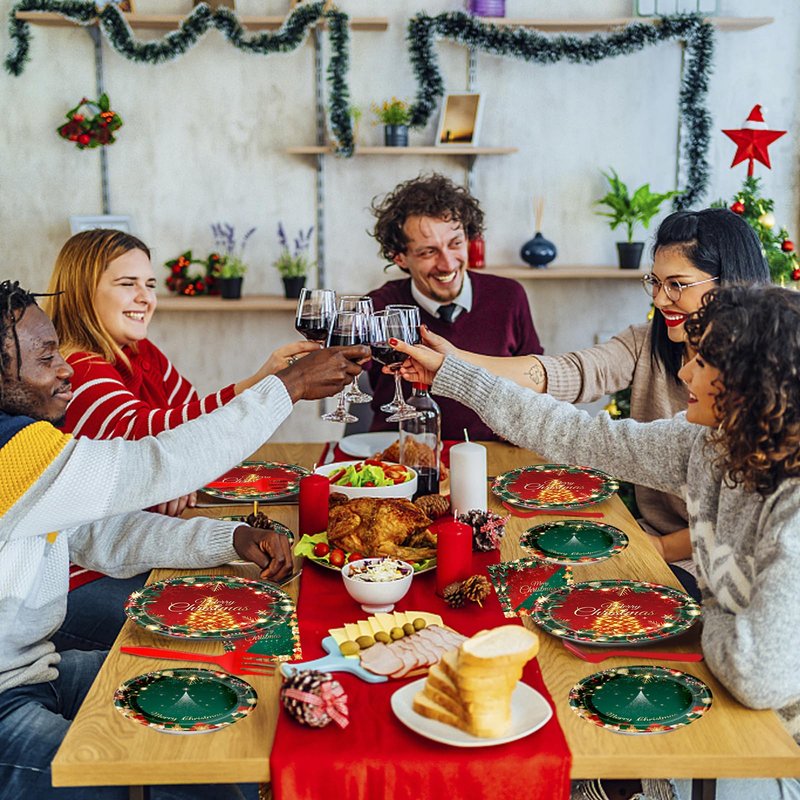 - Convenient Christmas Party Plates Set: These Xmas party kits are designed as disposable items, it drastically cuts down on your party prep time. Beautifully party decorations, and make clean-up a breeze, you only need to dispose of them after the party is over, convenient and fast. Make you fall in love with throwing parties!