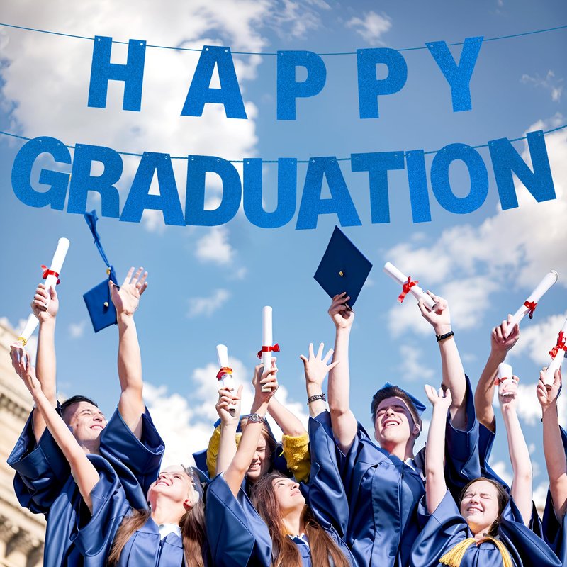 - EASY TO USE PERSONALIZED GRADUATION BANNER: These custom banner glitter letters are easy for you to use, there are hole and each blue glitter letter and numbers, you can use the needles to put them on the blue rope and then hang them anywhere you want.