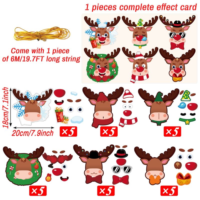- 【Package Include】for each Christmas ornament craft kits, you will receive 30 pieces Christmas reindeer cards ( in 6 styles ) that measures about 15cm/6’’ and 15 sticker sheets(including over 200 pieces self adhesive stickers ) to let your kids create their own Christmas reindeer ornaments. You will also get a 6m/19.6FT long string to hang the finished ornaments.
