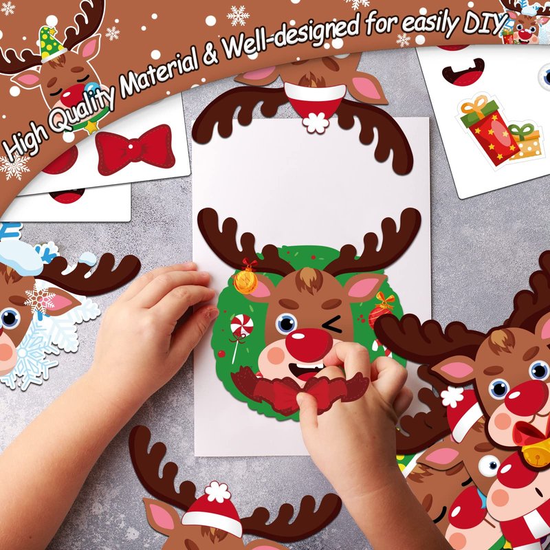 - 【Premium Material】Our Christmas reindeer paper craft kits are colourful printed for kids, the deer cards and multiple stickers are made of double-sided laminated card and sticker, making them tear-resistant, water-proof, no smell and harmless to children.The Xmas kids crafts are designed in vivid patterns and will sure attract children.