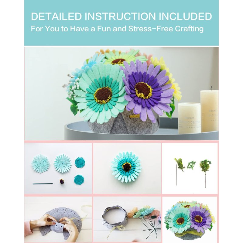 - ALL IN ONE SET:A felt flower craft kit designed to make beautiful felt sunflower and chrysanthemum bouquet on your own.The high-quality wool blend felt pieces are cut and organized for you to have a fun and stress-free crafting experience